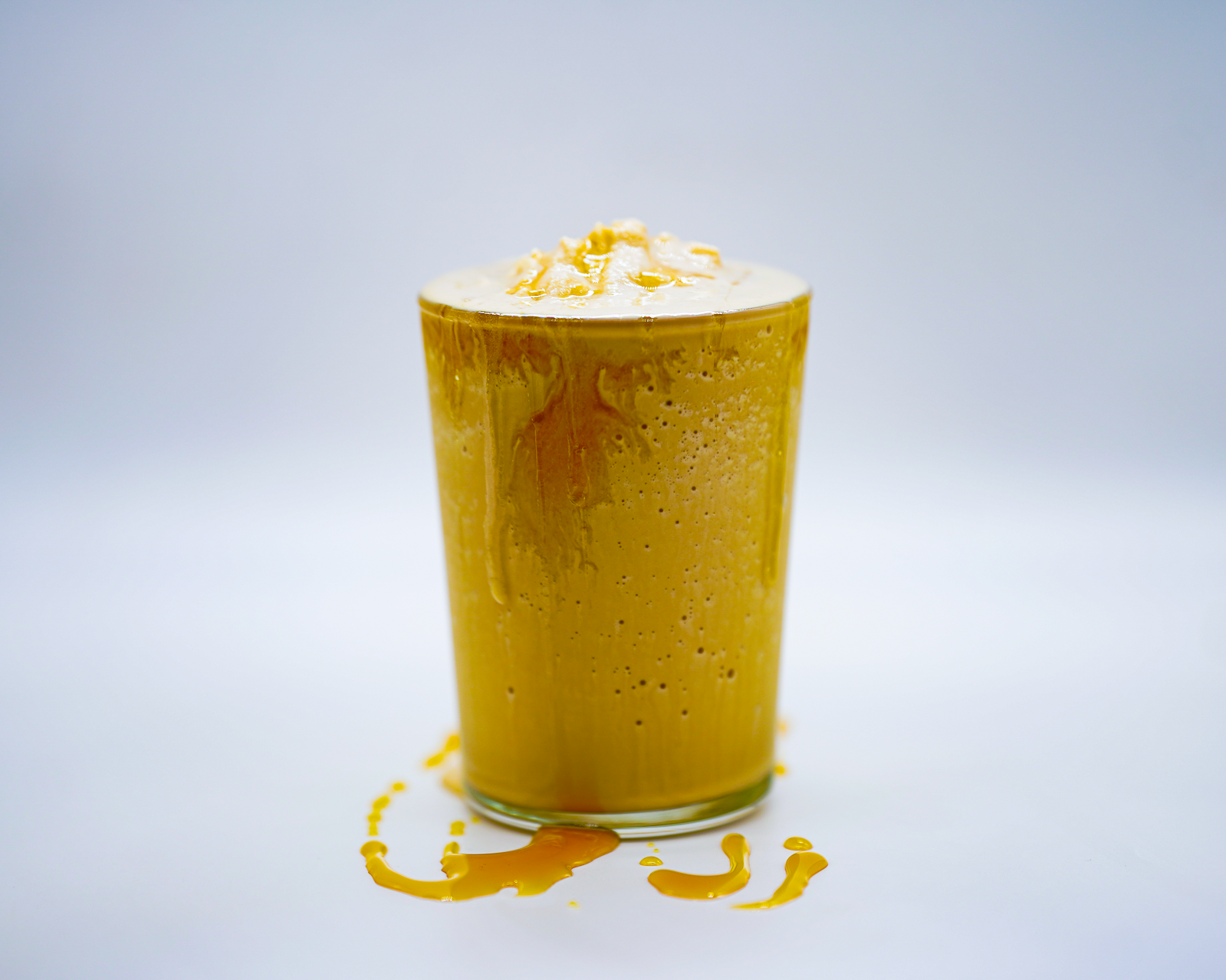 ● Add Frappe Base, syrup, espresso, half & half, and ice into a blender. Blend until smooth.
