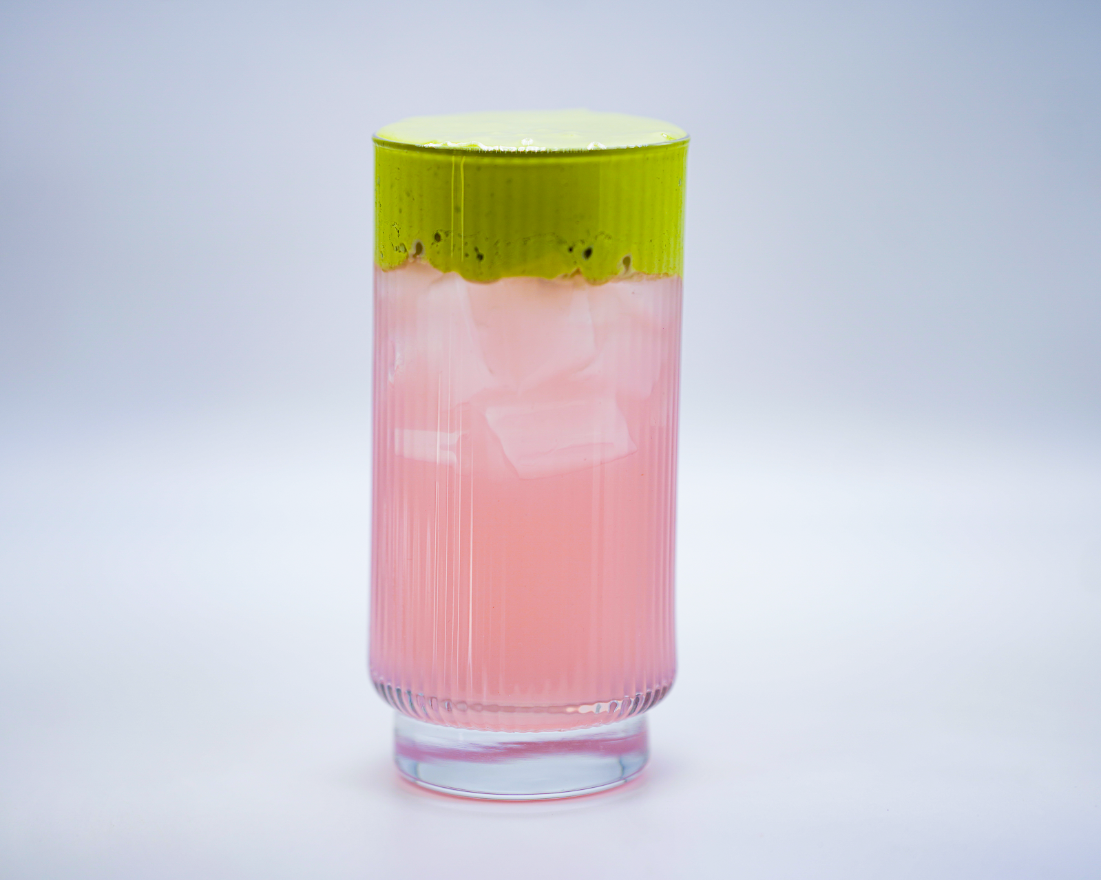 ● Add syrup & lemonade into a shaker. Shake until dissolved. Pour over ice. Top with Matcha Cold Foam